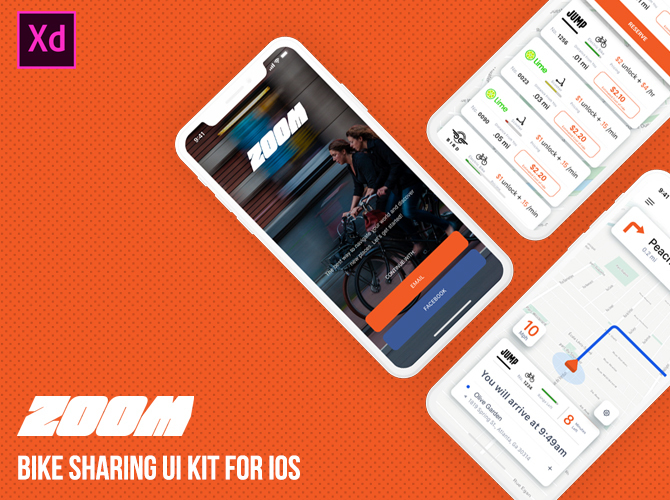 Zoom is a Bike/Scooter sharing app kit. It features 20+ static UI screens, The source file is layered and organized to jumpstart your project easily.